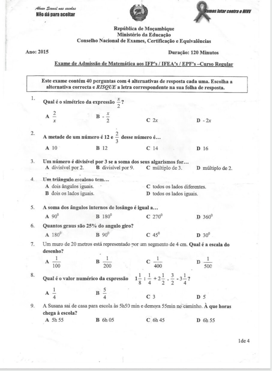O Exame de Matemática IFP 2018, aplicado nos Institutos de Formação de Professores (IFPs) em Moçambique, é uma etapa decisiva na jornada dos futuros docentes.