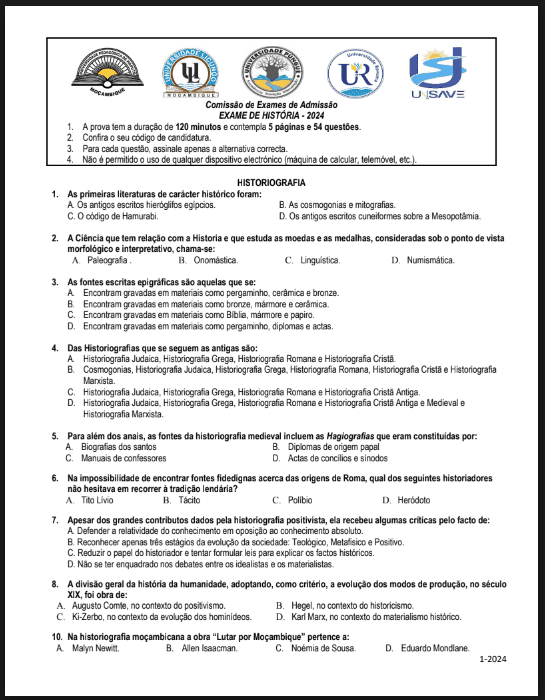 O Exame de História – 2024 da UP tem como objetivo avaliar a capacidade do candidato de compreender, analisar e interpretar os principais acontecimentos históricos