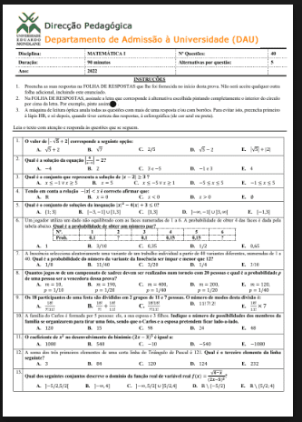 O Exame de Português II 2017 da Universidade Eduardo Mondlane (UEM) representa uma etapa avançada no processo de avaliação dos candidatos ao ensino superior em