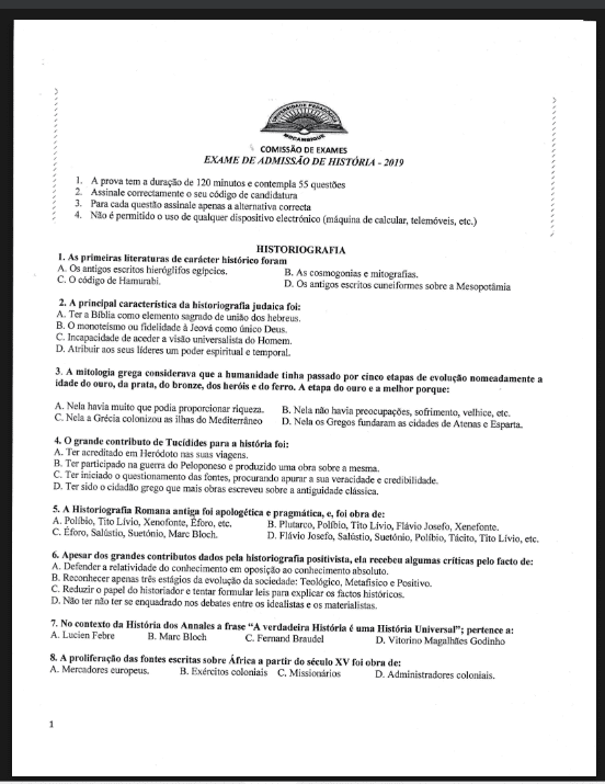Exame de História – 2019 (UP): Conteúdos Essenciais e Guia de Estudo