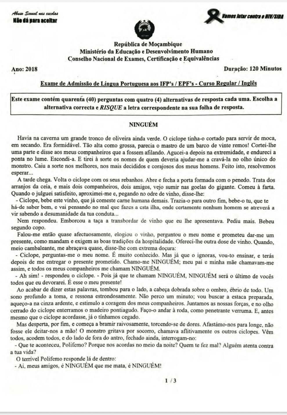 O Exame de Português IFP 2018 é uma das provas fundamentais aplicadas nos Institutos de Formação de Professores (IFPs) em Moçambique. Esta avaliação tem como