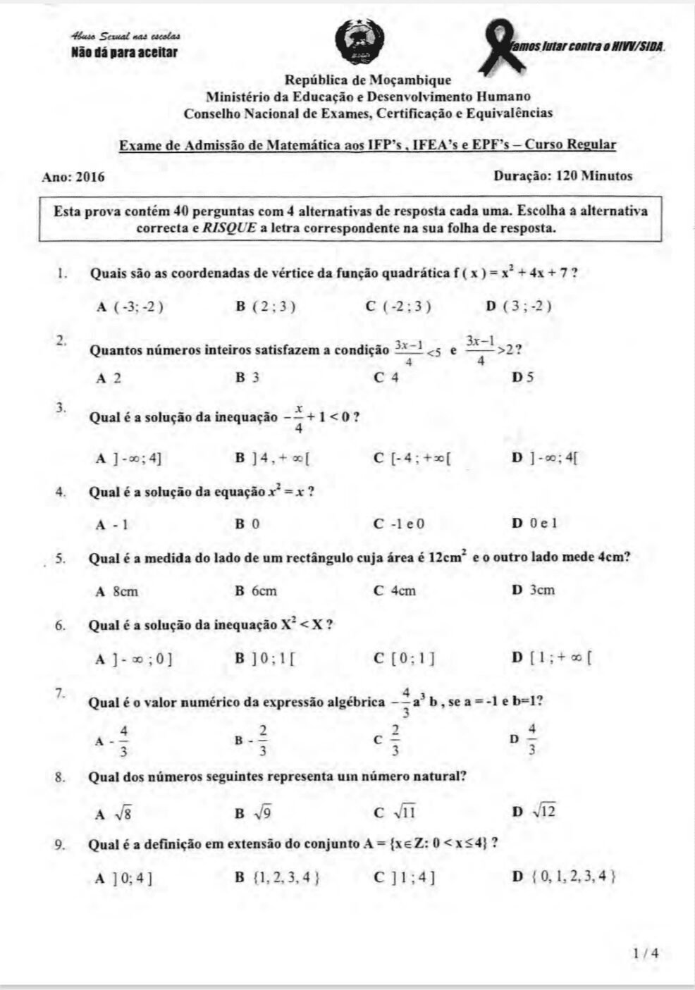 O Exame de Matemática IFP 2018, aplicado nos Institutos de Formação de Professores (IFPs) em Moçambique, é uma etapa decisiva na jornada dos futuros docentes.