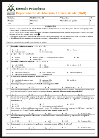 2023 Exame de Matemática III – 2023: Conteúdos Avançados e Guia Completo de Preparação O Exame de Matemática III – 2023 é uma avaliação avançada destinada a estudantes que já possuem uma base sólida em Matemática I e II. Gildo Eusebio Eusebio 2025-12-19