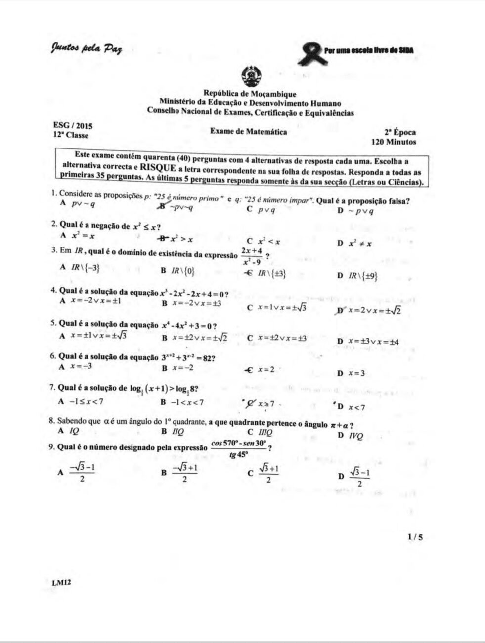 O Guia de Correção do Exame de Biologia – 1ª Época, 2014 para a 12ª Classe é um recurso oficial e essencial para estudantes e
