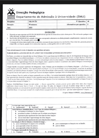 O Exame de Francês – 2023 avalia conhecimentos essenciais da língua francesa, incluindo gramática, vocabulário, compreensão oral e escrita, além da produção textual. Uma preparação